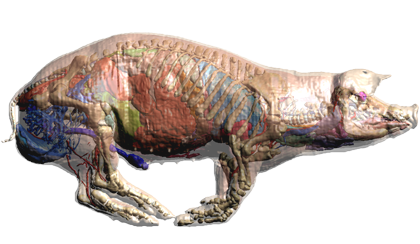 Most of our mice and rats models were developed based on microtome slices within the PERFORM A project and further used for the dosimetry of a large NIEHS project on free roaming animals under EMF exposure. Our numerical pig model was generated in collaboration with the MRI+ consortium. This model is based on MRI data and is used primarily as a dosimetric tool for research and development, in particular by MRI manufacturers.