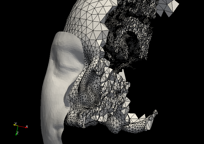The V2.0 surfaces are generated from image segmentations using a technique, which is guaranteed to produce surfaces with compatible interfaces between tissues (triangles are shared between neighboring tissues) and have no self-intersections. These two criteria, as well as good approximation to the segmented labelfields and acceptable triangle element quality have been achieved through dedicated mesh processing algorithms. Please note that compatible surfaces guarantee there are no gaps or overlaps between tissues.